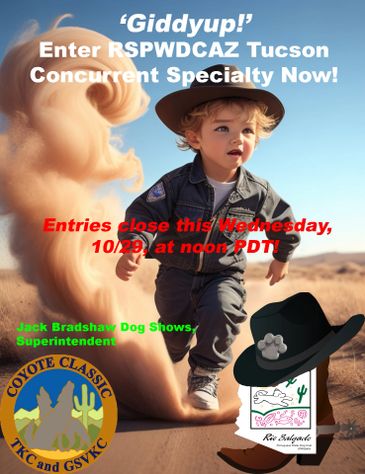“We have been informed by a reliable source that PWDs will be coming from all over the country to our Arizona supported entry. Their owners will be allowed to come with them to be a part of the festivities. Some of the dogs have already been seen on boats at sea, others will be on their bicycles conditioning themselves, while others, it is reported have chosen hot air balloons! Whatever the mode of transportation, it appears as though these dogs are determined to get to Phoenix one way or another. No doubt they have heard of our great fall weather, or perhaps the good times that are planned for them and their owners for whatever reason, don’t let them leave you behind!”